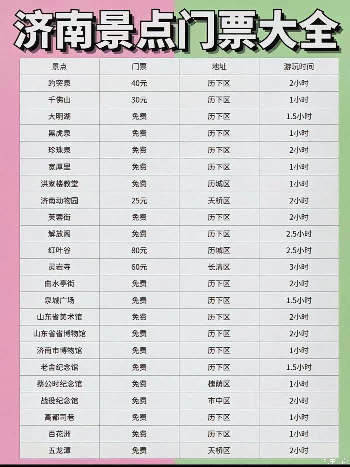 济南门票大全仅供参考