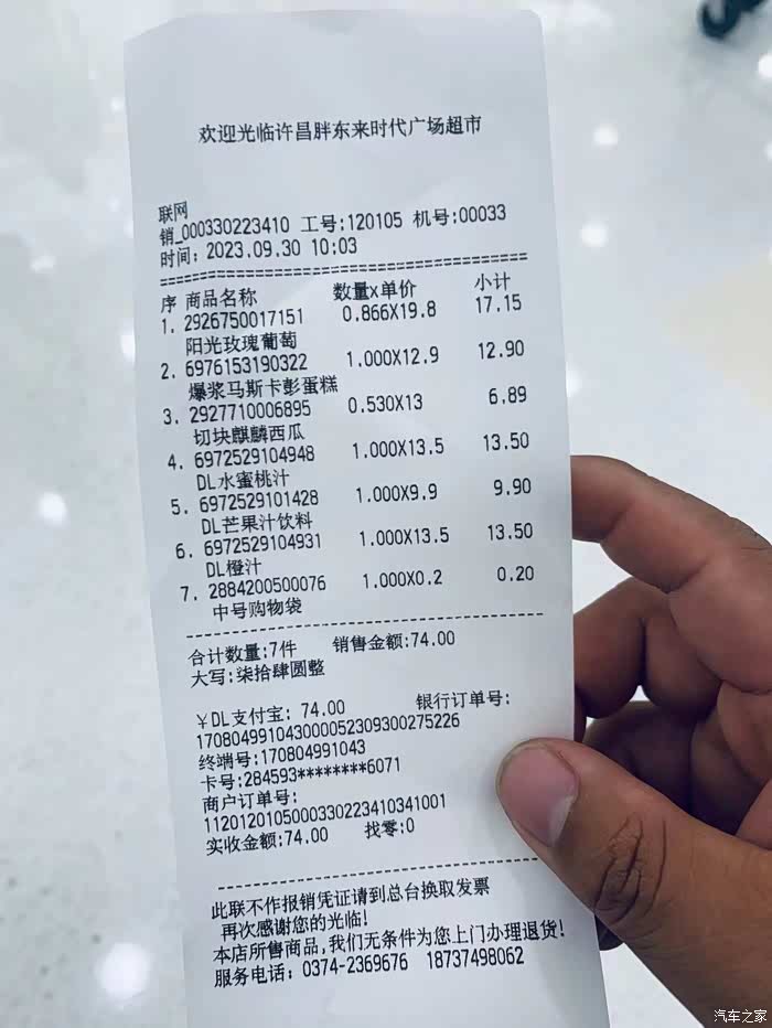 打卡胖东来时代广场的超市,消费74元。