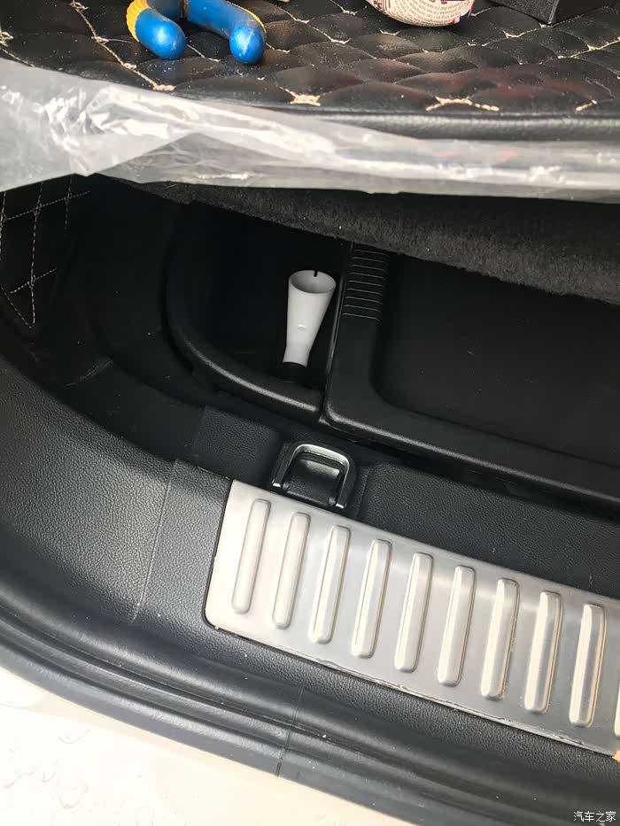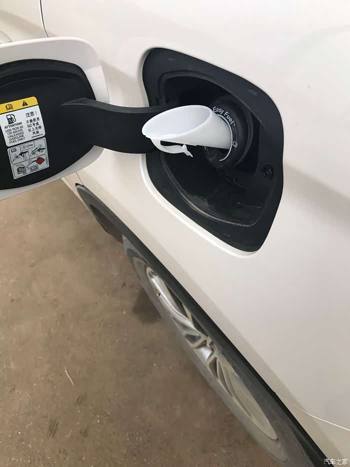再将有汽油倒进油箱,在后备箱下面有个专门的油箱漏斗,把它拿出来。