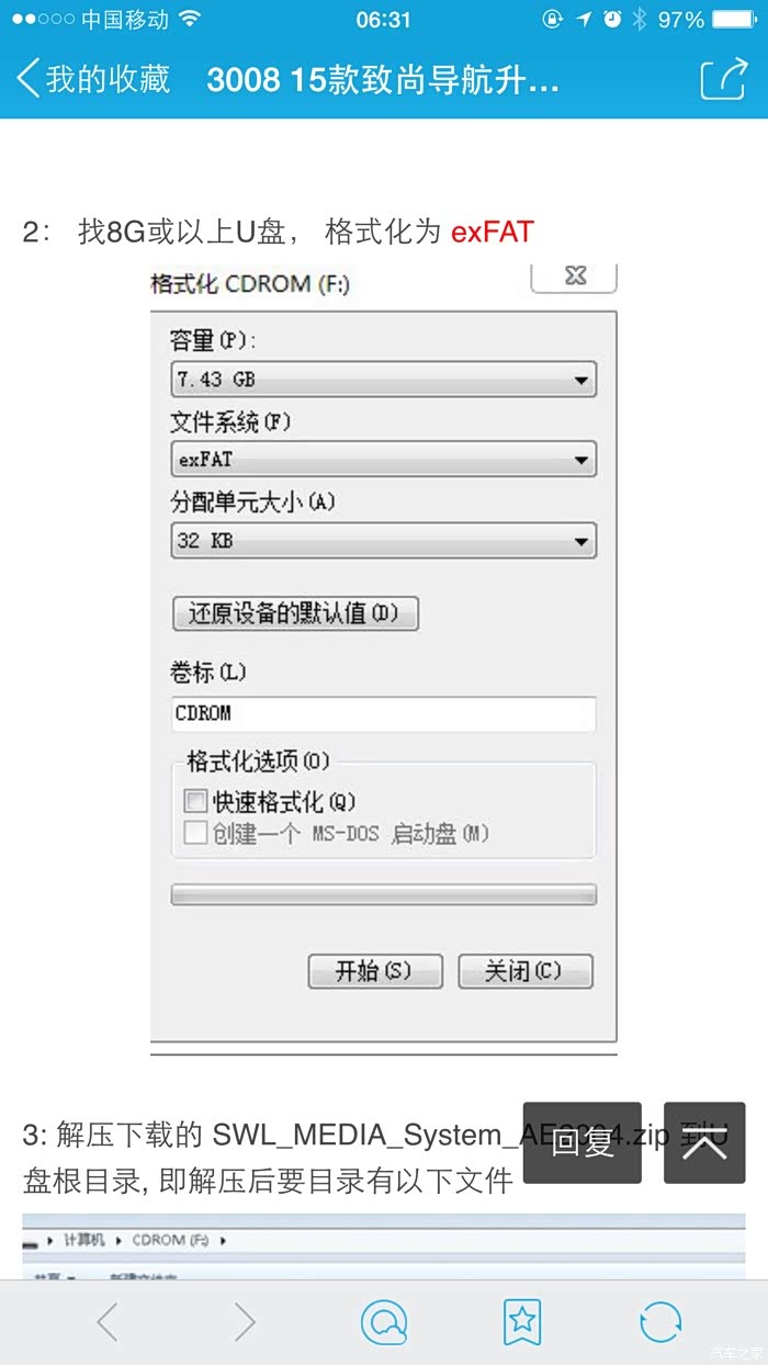 删除U盘内文件,格式化U盘,必须是exFAT格式,要不然装不了5G的地图,XP需要下个补丁99704,自己百度一下,要不然不能格式化