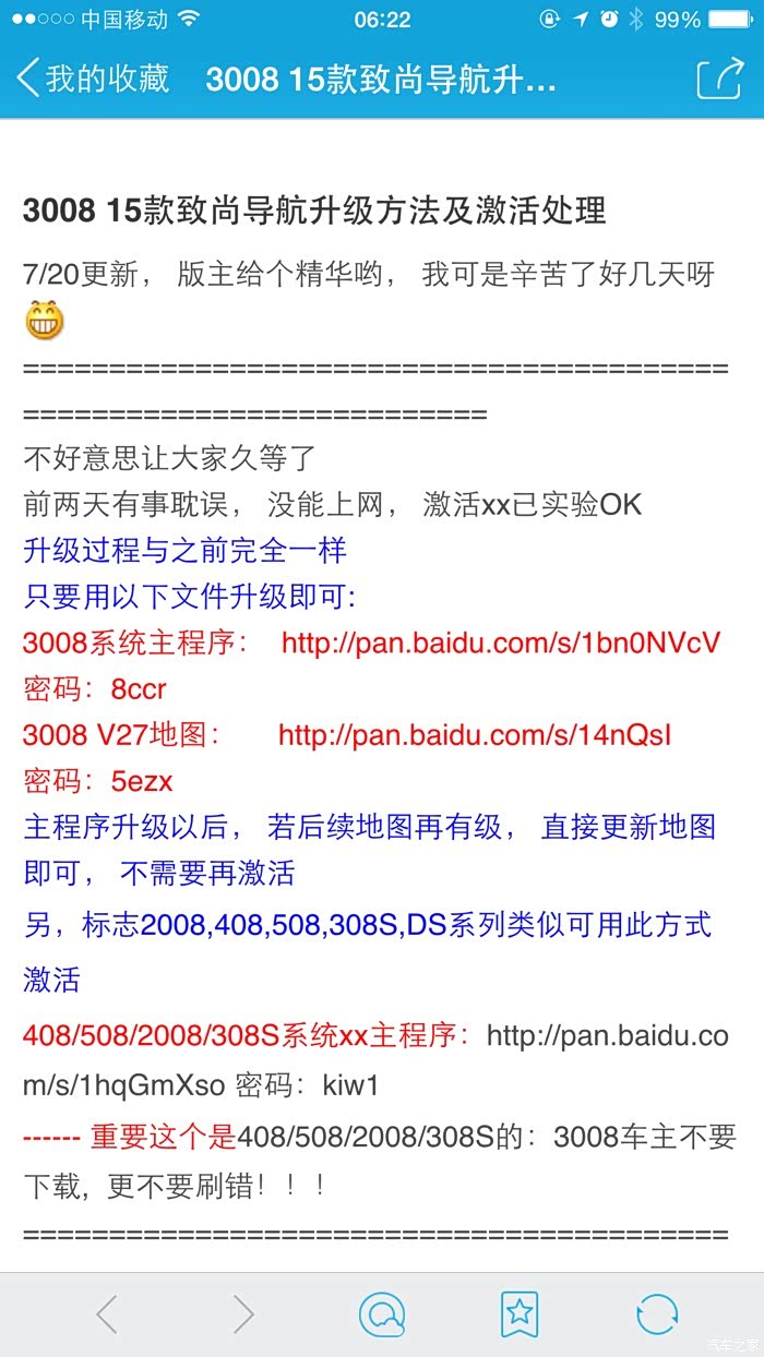 前期手痒升级主程序,结果导航需要激活码,询问4S需要340大洋,240卡费,100工时费,并且卡只能用一次,再想更新重新买卡,坑啊!