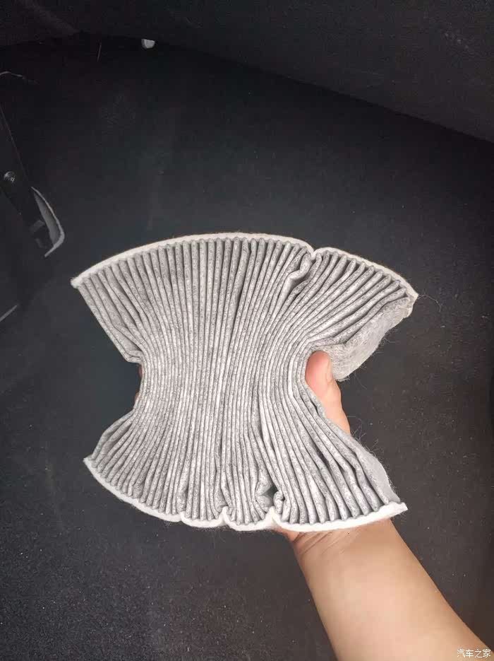 安装新的空调滤芯,论坛一些帖子有过介绍,捏成这样子便于安装,安装时注意小箭头方向,要有耐心,新逍客的空调滤芯的位置反人类而且难安装,安装好空滤后,盖上白色塑料盖,听到咔嚓声就是安装到位了,最后盖上黑色装饰件,作业完毕!祝君好运