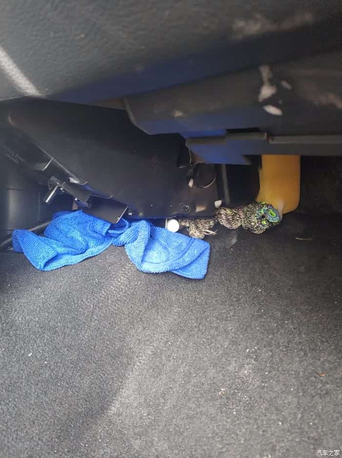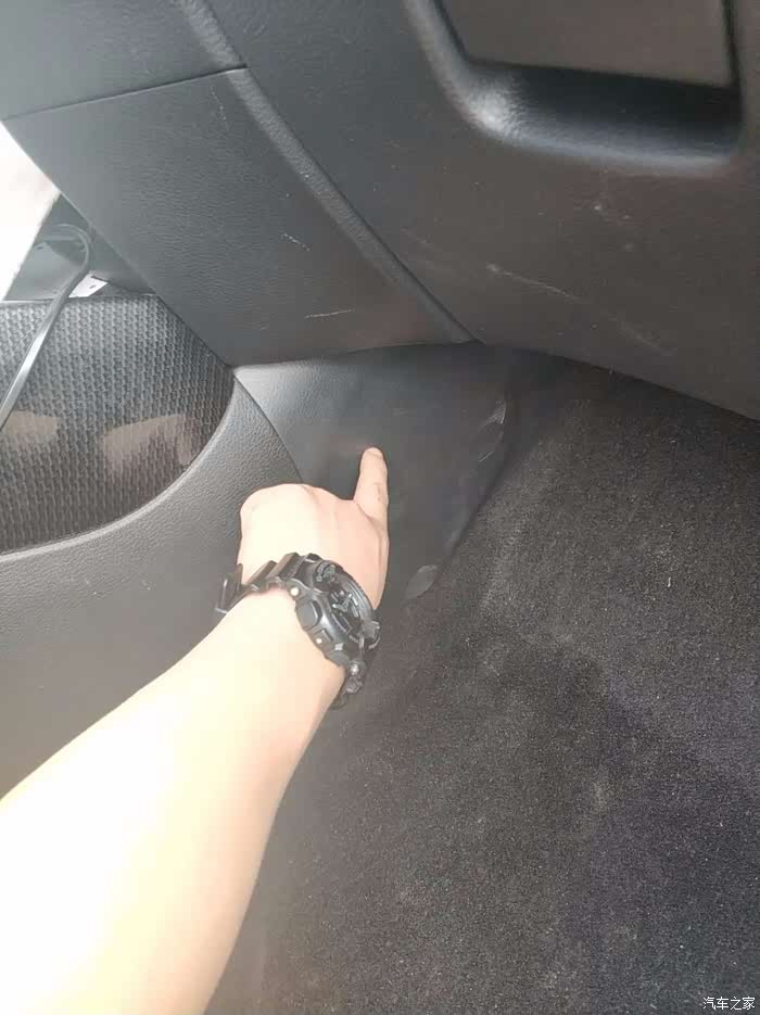 第二步,打开副驾驶中控台下面的这块塑料件,用力拉即可,卡扣固定的。