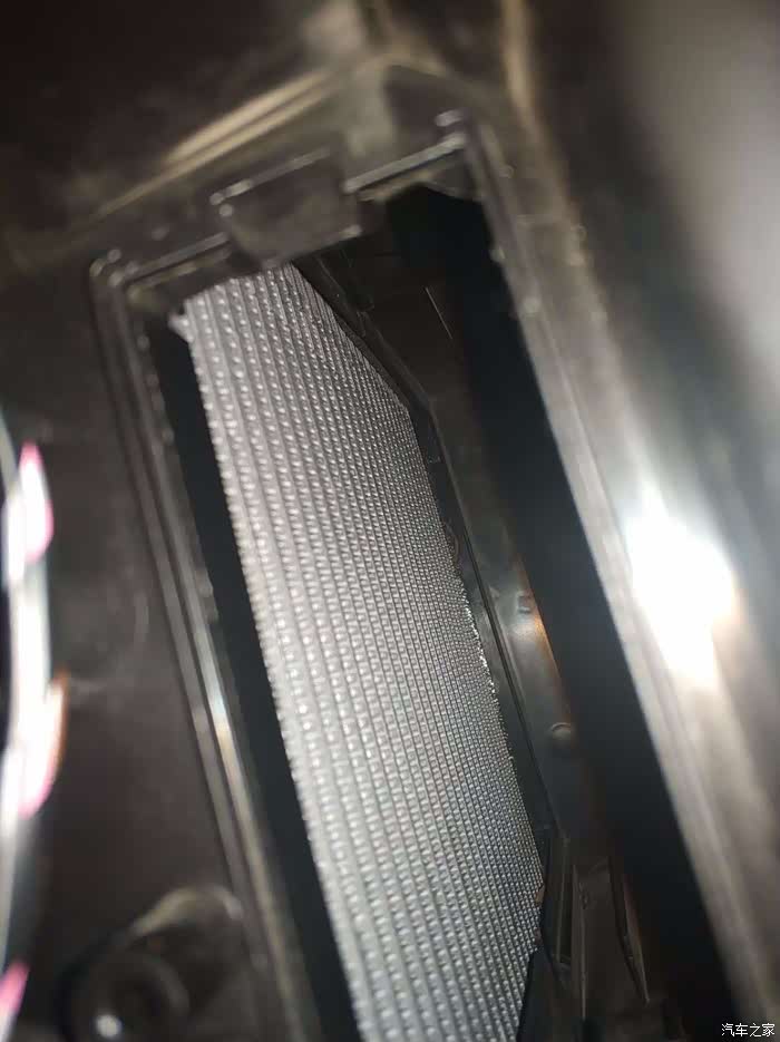 取出滤芯后,用手机拍照就可以发现蒸发器,待会清洗泡沫就是喷在这里