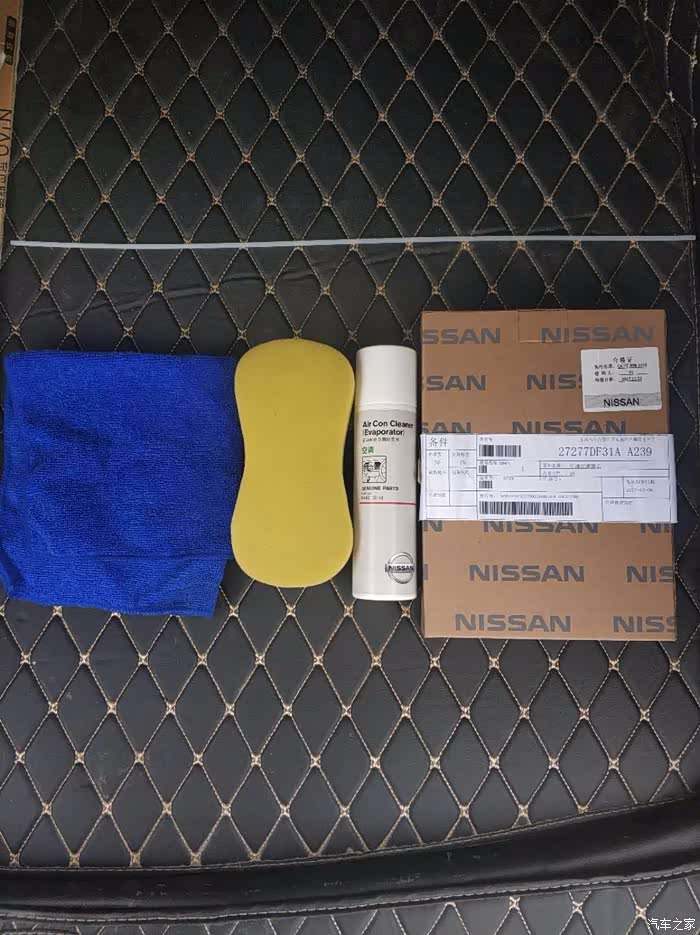 首先你要准备以下工具,毛巾两条(我操作的时候只准备了一条,后来发现最好两条,防止泡沫飞溅),洗车海绵一个,清洗剂一瓶(某宝有售,日产原厂),新的空调滤芯一件(某宝买的日产原厂),塑料管一根,塑料管尽量长一点,不要太软的。
