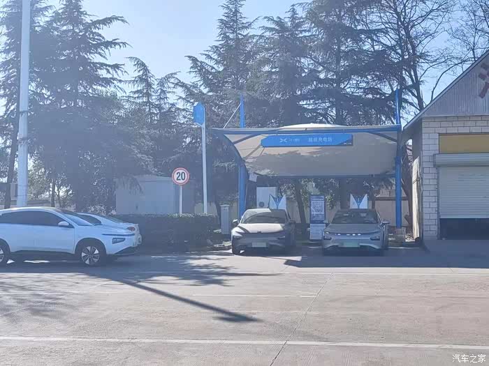 第二个补能点,从许昌服务区,前往漯河,因为搜索到漯河下高速1公里左右就有一个小鹏超充站,而且还不用排队,果断前往补能。到了以后,发现其他鹏友也基本都是长途自驾出行,明显感觉这个春节,新能源汽车出游数量也增多了。