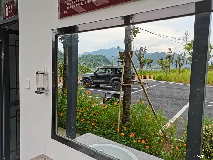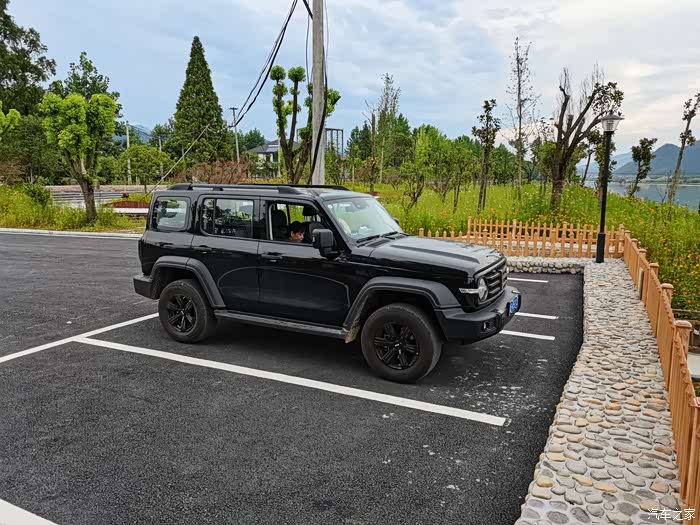 这边免费的停车场,车位都给你画好。小坦克停在这真是靓车配美景!