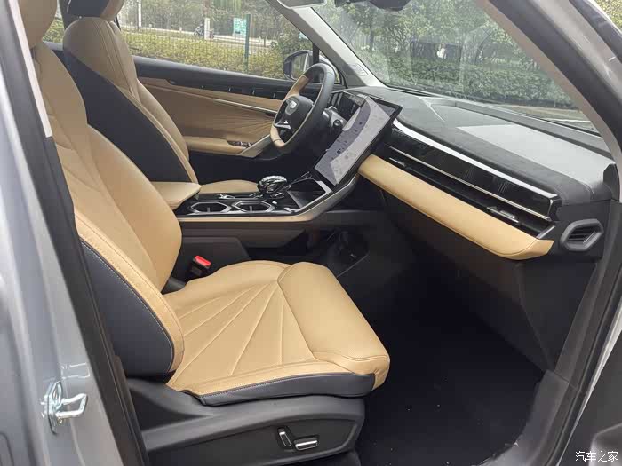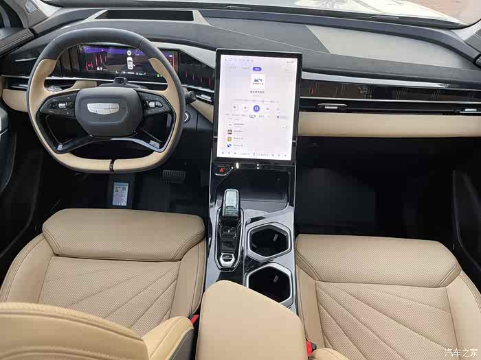 博越L的内饰也比一般的燃油车要更有科技感,13.2英寸的竖向中控屏征服了我和我女朋友,我们俩都喜欢这样的中控屏,还试了下语音助手,基本的调节空调,调出360全景都是可以的,所以中控区没有按键也不要紧。