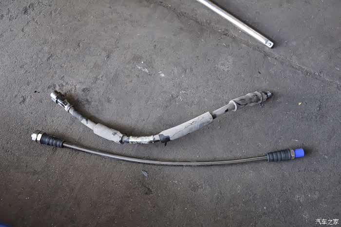 两下五除二就拆下来了,新旧刹车油管对比一下