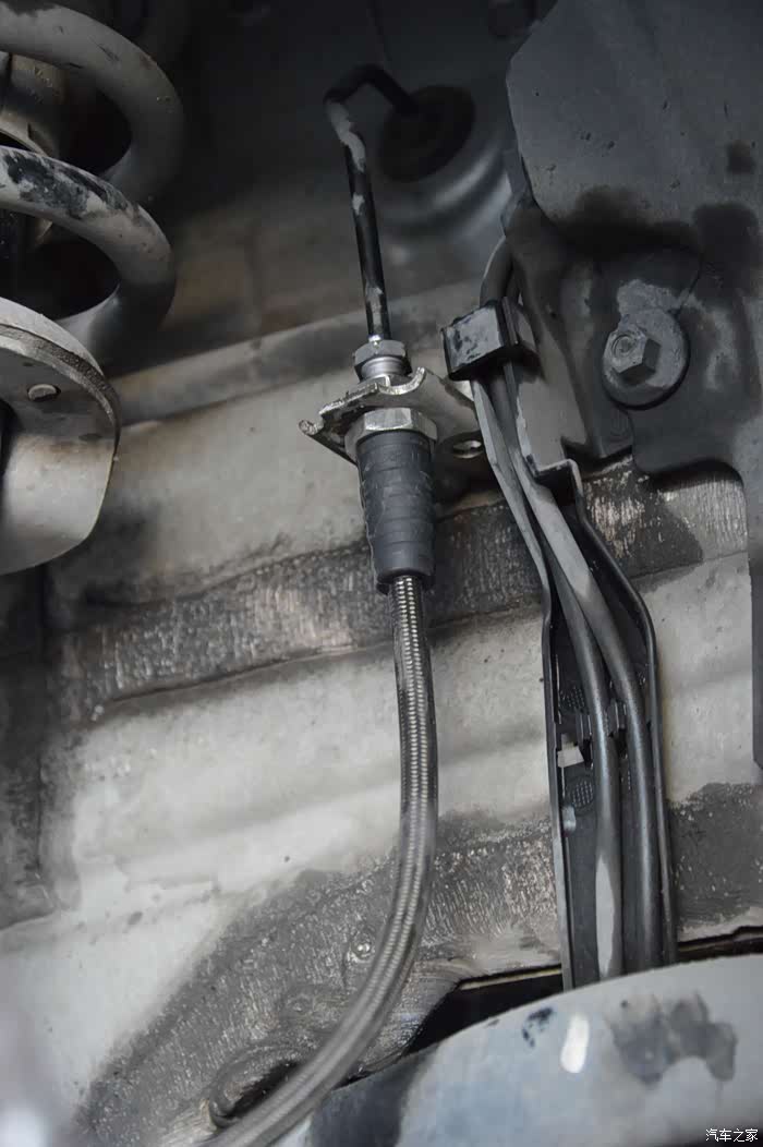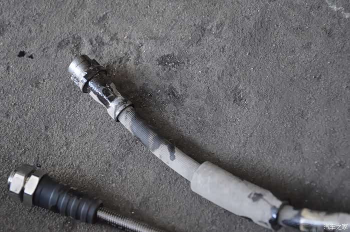 旧的刹车油管,表面有点脏了,虽然目前功能完好,但这材质与安全性真的让人不放心,升级改造势在必行