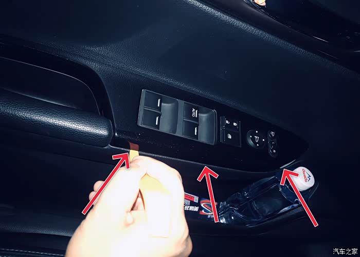 开翘,从箭头的三个位置翘。如果冬天气温低的话,建议把车内的暖风打开,把车里吹的热热的再翘,否则模具的卡扣比较酥,容易断