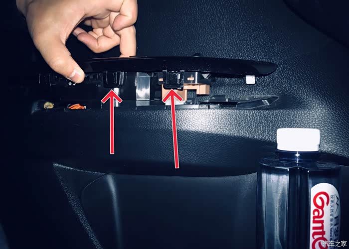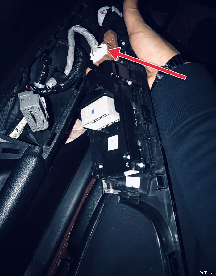 插头拔了的状态,箭头是前端后视镜调节和折叠按键的接口,那个不用动。