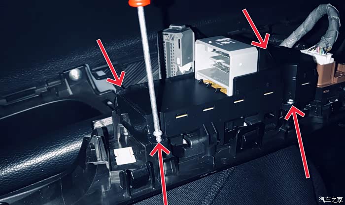 副驾的四个螺丝位置,同样注意保留好螺丝