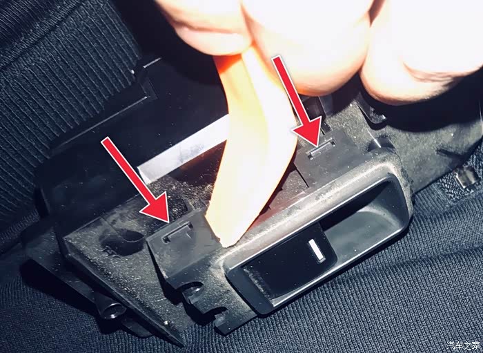 副驾的这个按键底座,翘起来要格外小心一些 因为模具小,所以非常紧实。基本没什么矿量,所以更要慢慢来 不要急