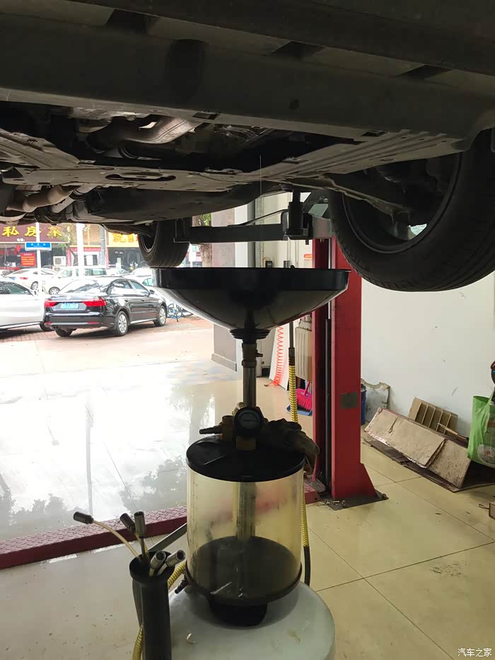 1.首先确认换多少油(重力法8升,循环机12升)我这里主要讲重力法。经过确认变速箱如果抽空的话就要加6.5升油,但是换油的时候单纯把变速箱放油口打开,只能放出3.5升左右,也就是说放出来还要加进去3.5L,但是按照算法,这样换油只能换50%的油不够彻底。我是这样的,首先放油,然后再加满油。加满后跑几公里,回到店油全放,再加满。因为更换过程中,变速箱油会有损失,我建议买够8升备用。