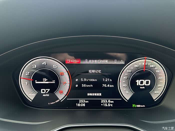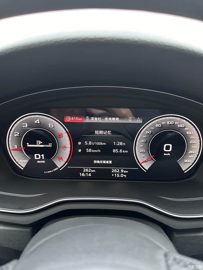 后面高速车多了,没开巡航了,刚下高速等红灯又拍了一张,油耗5.8L,很完美!