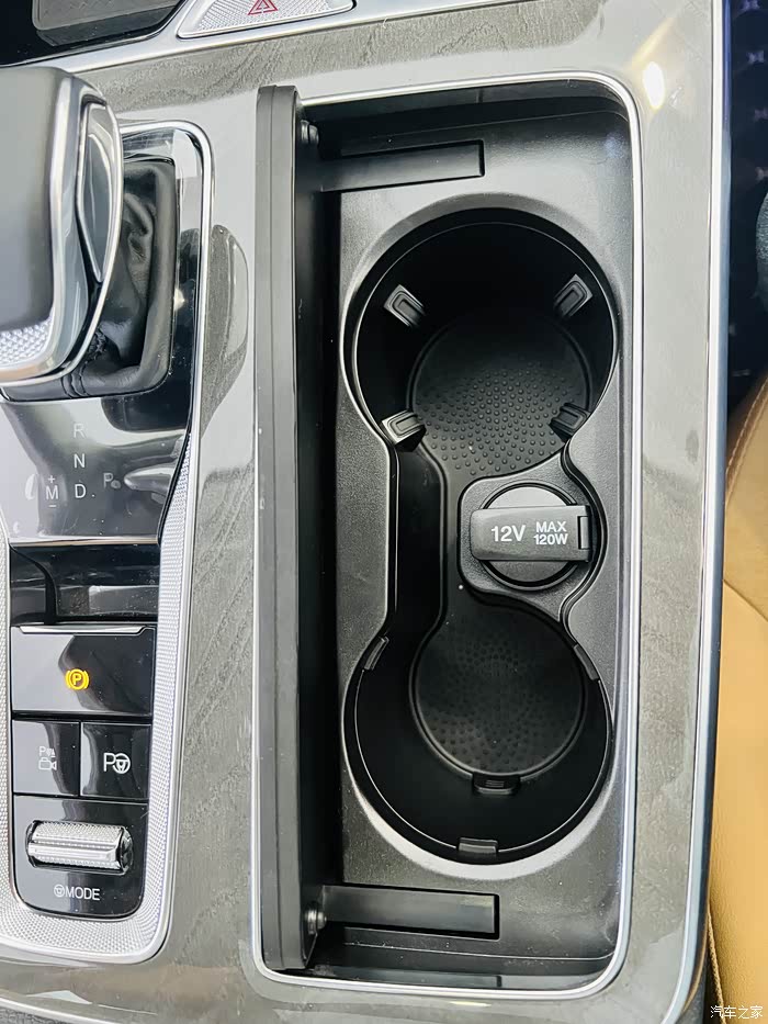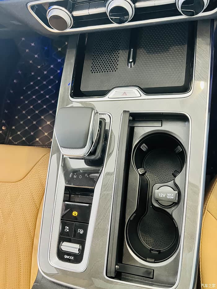 中控台的设计也是很人性化的,无线充电面板下面也做了通风散热孔,钢琴烤漆材质的饰板质感很不错。档把的握感不错。