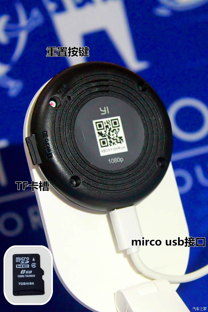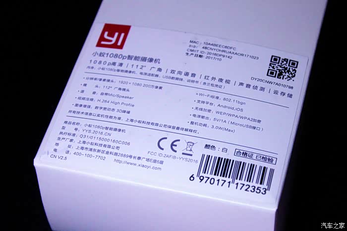 印入眼帘的首先就是那个黑亮黑亮的摄像头。以及那个 ”YI“ 标下方明显得 1080P标识。
