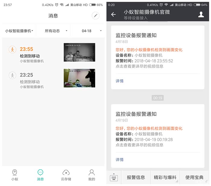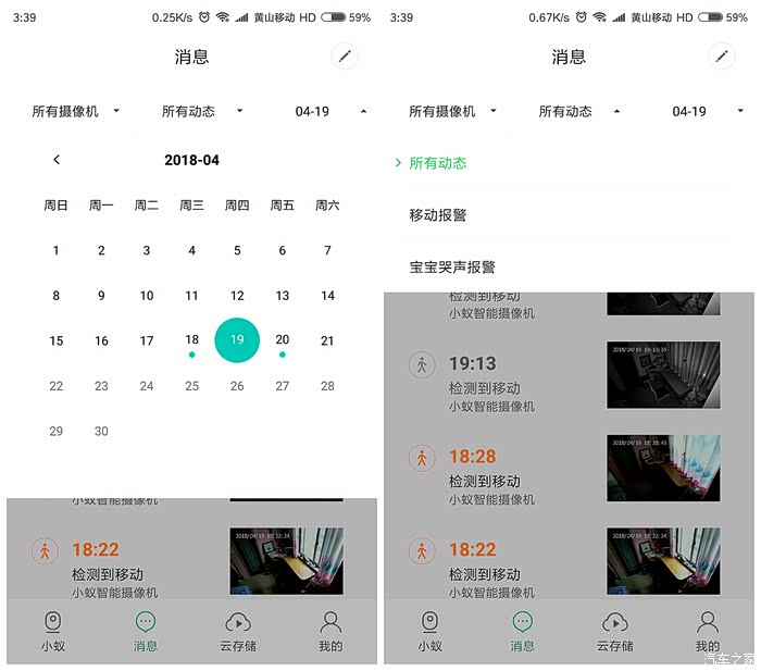 移动侦测 和 宝宝哭声侦测