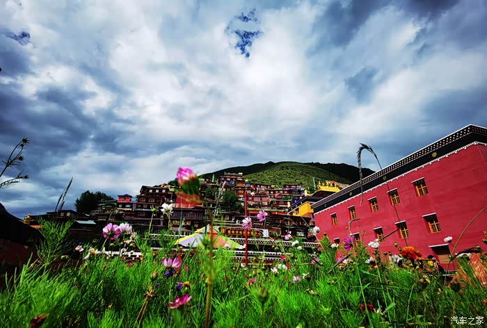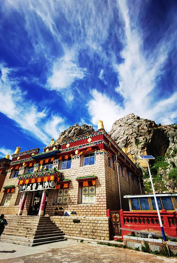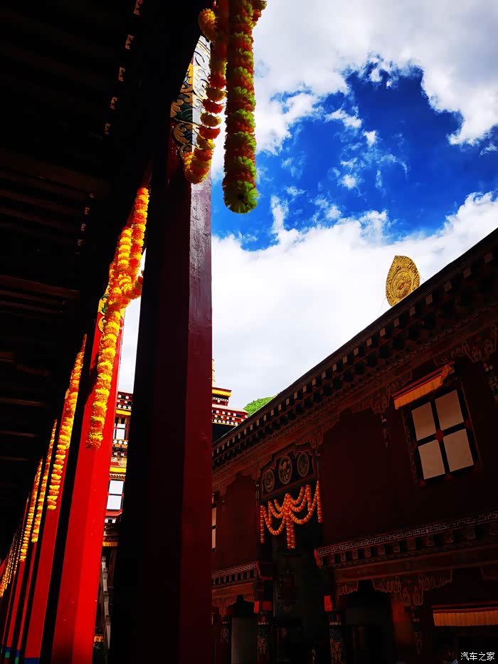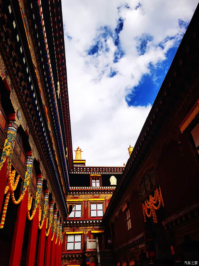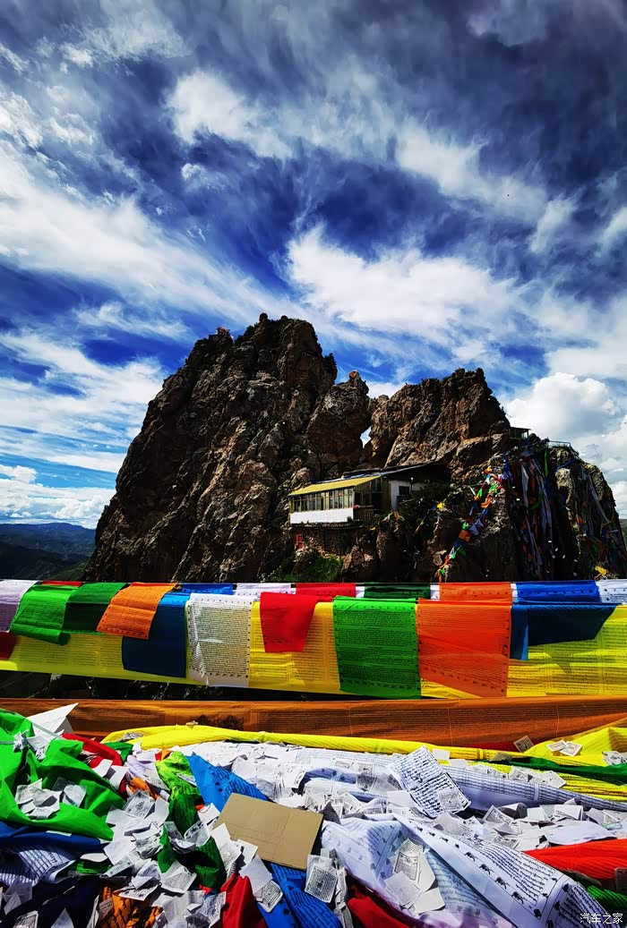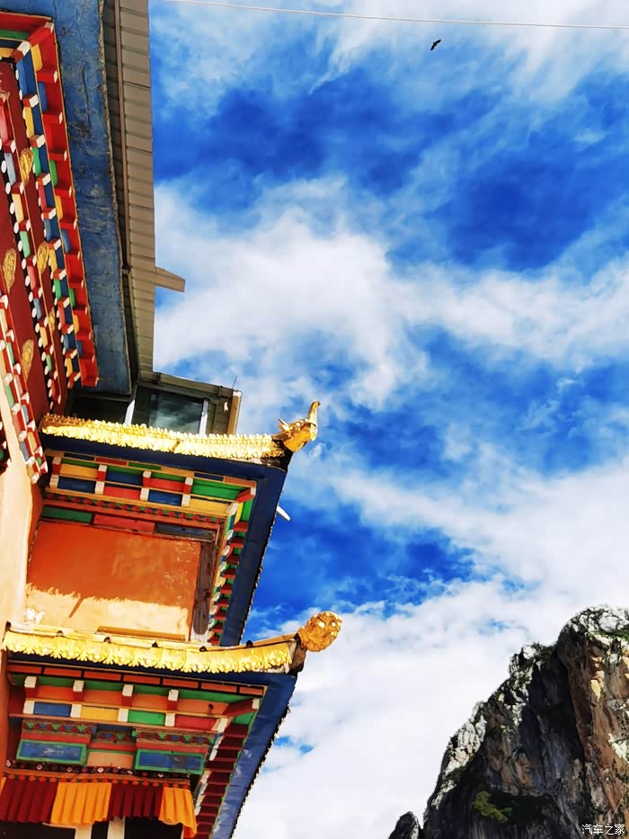 吃饱喝足便前往号称世界最高的寺庙——孜珠寺。从河谷往山顶的这段路11公里,海拔落差达1200米,一直陡着爬,不时看见停在路边掀开引擎盖的车,我真害怕加入他们的队伍。我前面是三个坦克300,不知咋的,一直跑不起速度。我的车又只有把转速拉起来才有劲,跟在他几个后面,冲不起来,只有手动一直在1.2挡之间切换。我兄弟一直害怕发动机开锅啊,还好顺利爬上了山顶。
