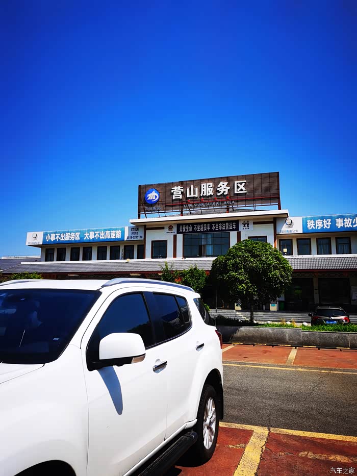 路过营山服务区,巴杆纸烟,休息哈。今天天气还不错哦,,瞧这天蓝得。
