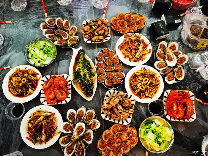 晚上,朋友李总他们一行买了海鲜到我们住的酒店来加工。又是两桌大海鲜,比我们在涠洲岛的更夸张。