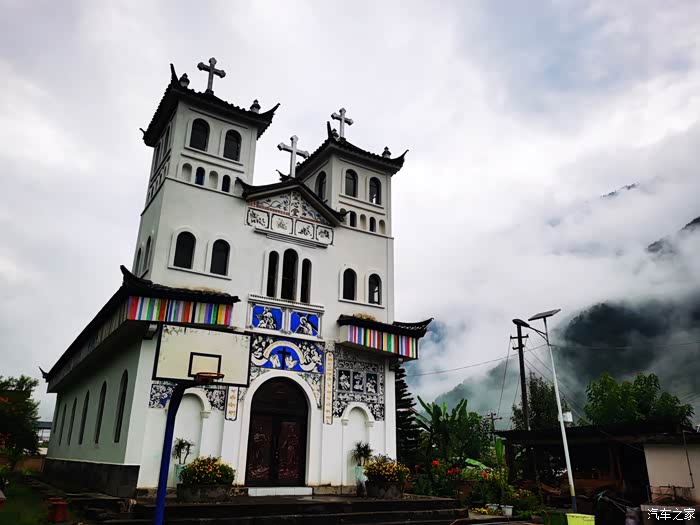 出发前,去看看镇子里的重丁天主教堂。重丁教堂是法国传教士任安守在察瓦龙地区传教,前后花了十年的时间才于1935年落成。