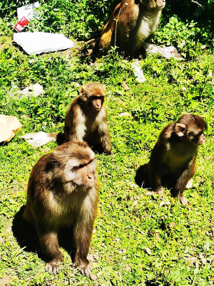 被路边的猴群劫道了!!要想过此路,留下零食来!!