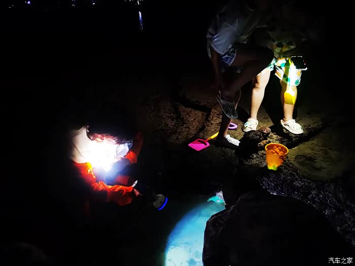 三点了,把房间里已在梦乡的小伙伴们叫起来,带上工具,去赶海咯!