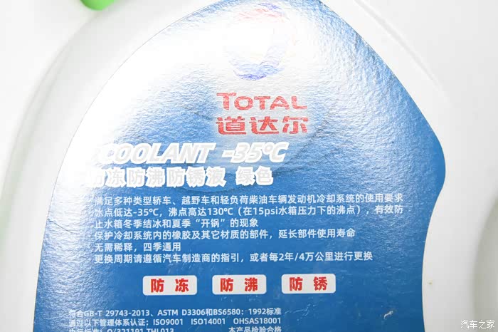 产品优点:东北冬季必须使用防冻液,不然会冻冰这才是重中之重。东边会冻坏水箱管路。防腐蚀功能。发动机及其冷却系统是金属制造的,有铜、有铁、有铝、有钢还有焊锡。这些金属在高温下与水接触,时间长了都会遭到腐蚀,会生锈。而防冻液不仅不会对发动机冷却系统造成腐蚀,还具有防腐和除锈功能。防冻液的沸点高。水的沸点是100℃,优质防冻冷却液的沸点通常在零上110℃,这样在夏季使用,防冻冷却液比水更难开锅。第三是防冻液可以防垢,用水作冷却液最让司机头疼的就是水垢问题,水垢附着在水箱、水套的金属表面