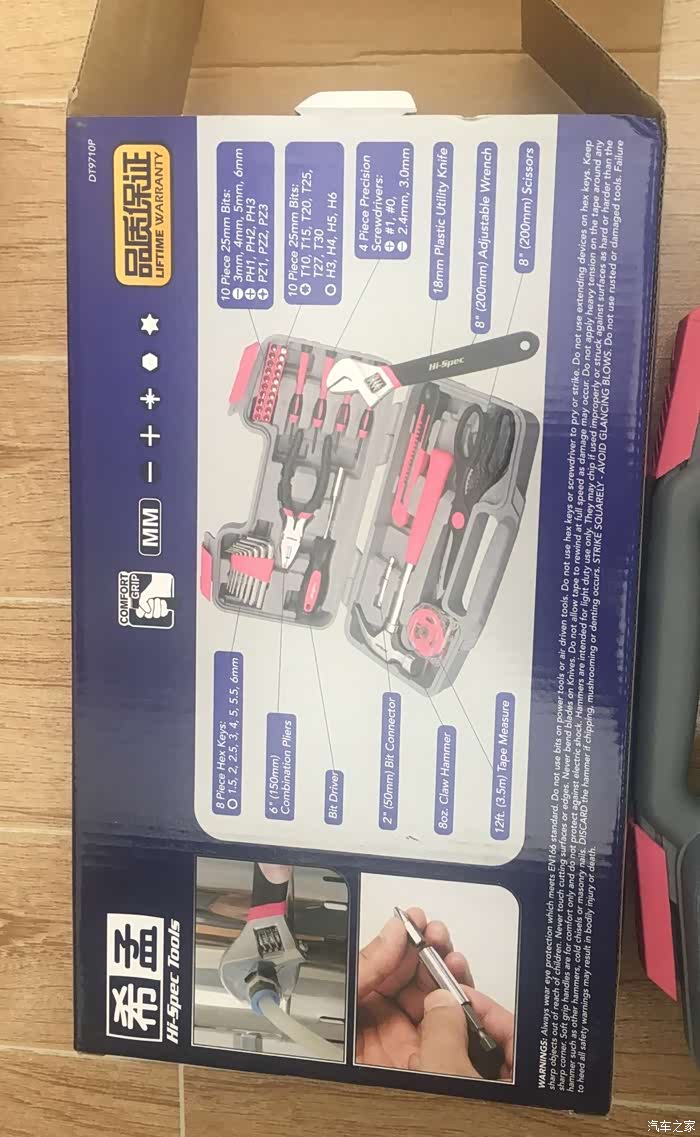 后续:对比其它同期【家家众测】评测车友的晒图,我这个箱里是少了1个六角扳手(8枚只有7件)。