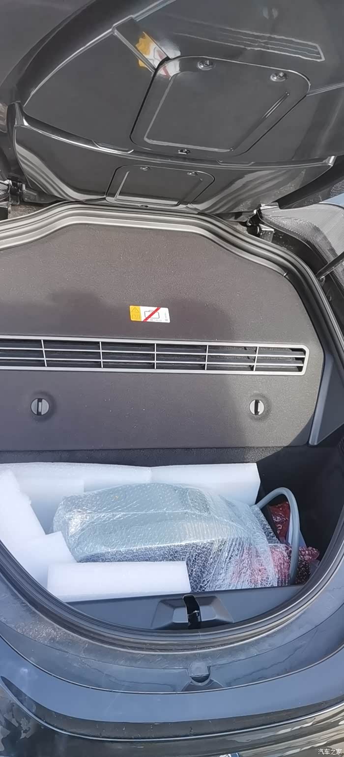 搞定,准备出发。送的玻璃膜,后备箱正好塞下了充电桩。
