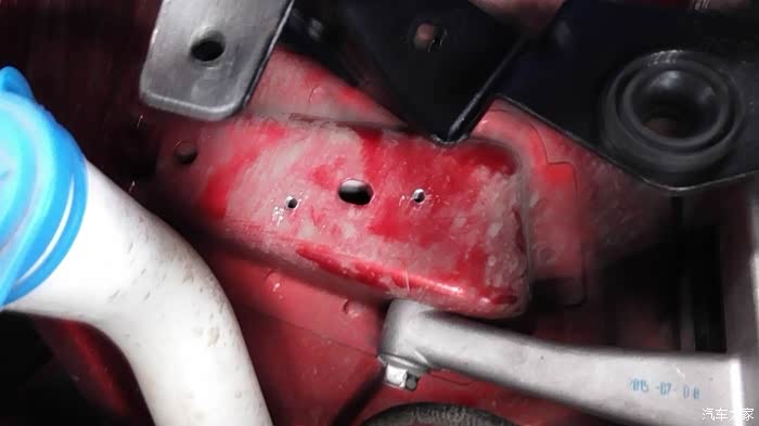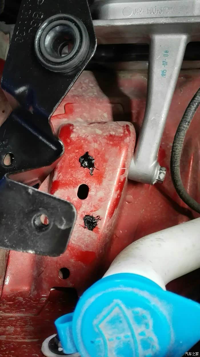 拆完老机脚和水壶,水壶支架跟车架螺丝孔不匹配(14年12月的车已经预留了螺丝孔,看来奇瑞去年就找到优化方案了,苦于备件采购的多了一直没改