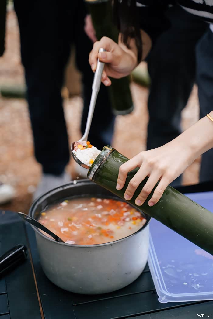 我们在米勒的指导下,学会锯竹子,做竹筒,开竹节,灌食材,最后齐心协力做成了美味的午餐。
