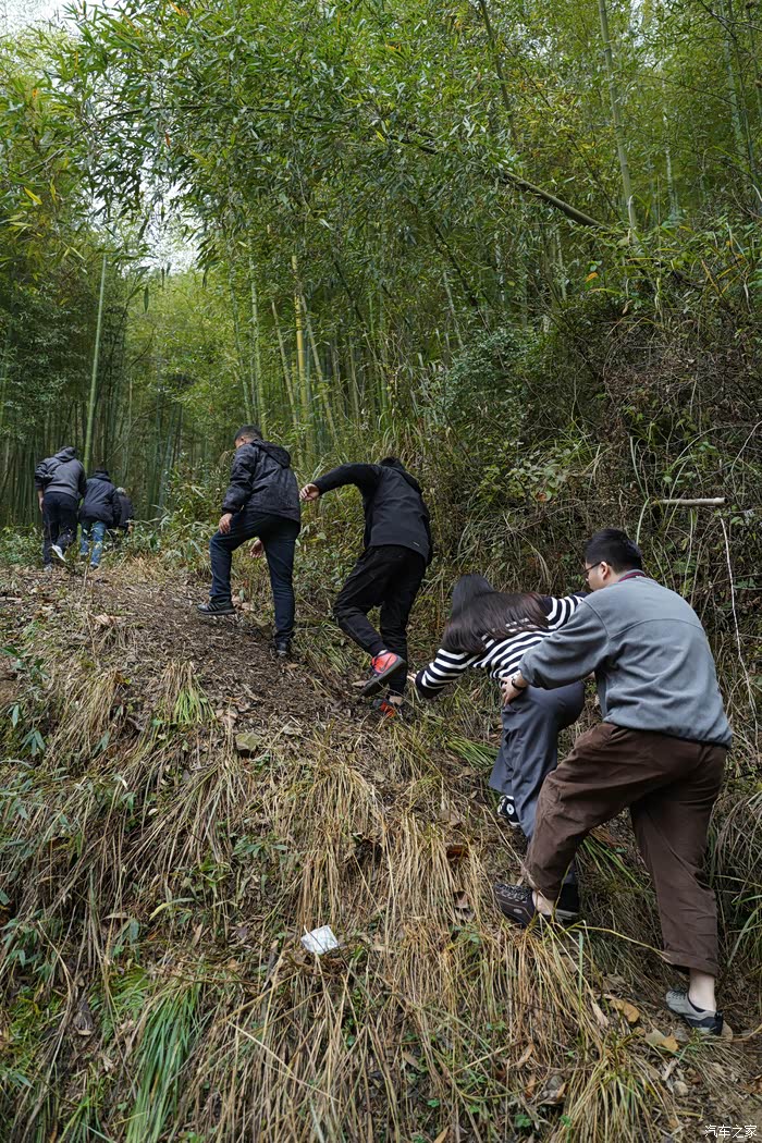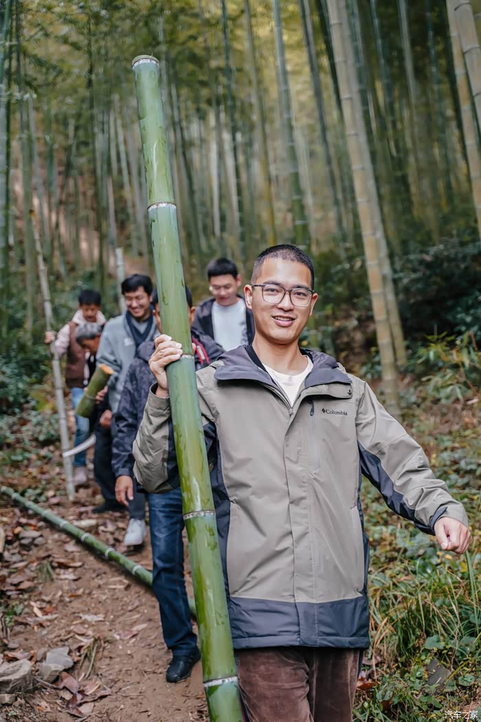 在挑选完合适的竹子砍下,抗着下山背会营地。