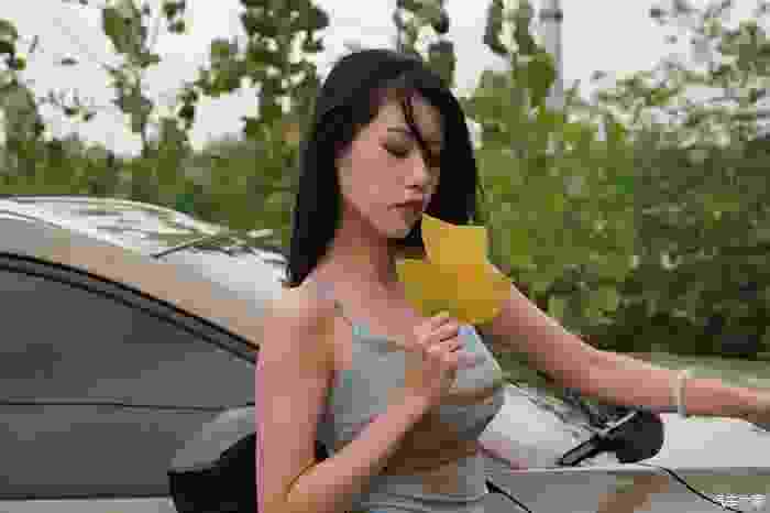 这一批图当时是在地下停车场拍的,虽然光线暗,但是效果不错。这张很有士气的样子。侧面的流线设计,降低了风阻,提升了美感。走在路上就像是一道亮丽的风景线。丰满的老婆也是相当有灵气,搭配的很和谐。