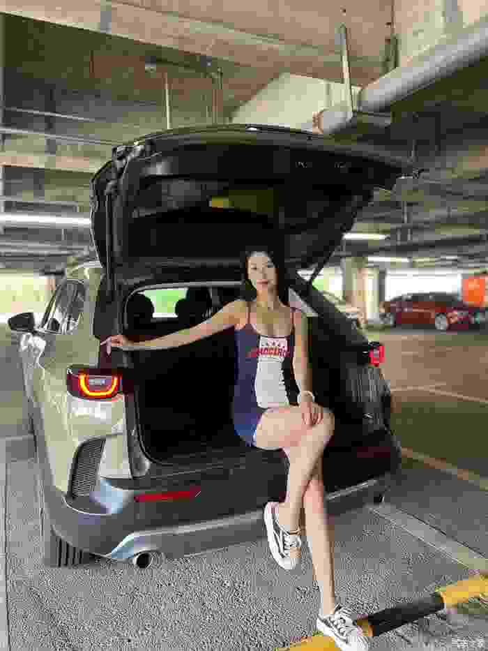 最近对马自达CX-50的空间使用也很有体会,看这张图,夏天的时候刚提车不久,后备箱还没来得及放东西,空空的,当时老婆就能轻松坐进去,空间还是很大的。这段时间的使用,对空间感受更深了。每个人对空间的要求不同,我的车大多是一人驾驶,很少有人坐在副驾驶,老婆周末坐车跟我出去的时候,一般也都是坐后排,所以我们车的空间很够用。自提车以来后排也只有两三次坐了两三个乘客,反应也挺好。对于我来说,驾驶座空间充裕,双腿可以伸直,不憋屈就满意了。