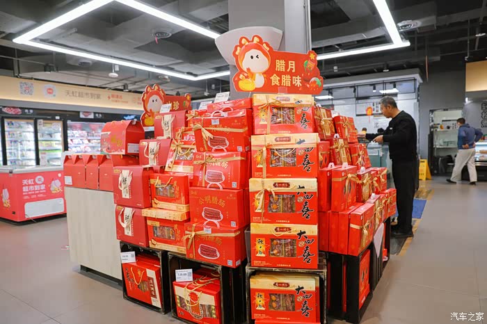 超市里摆满了各式各样的年货礼品,一进入腊月,年味儿就越来越浓了