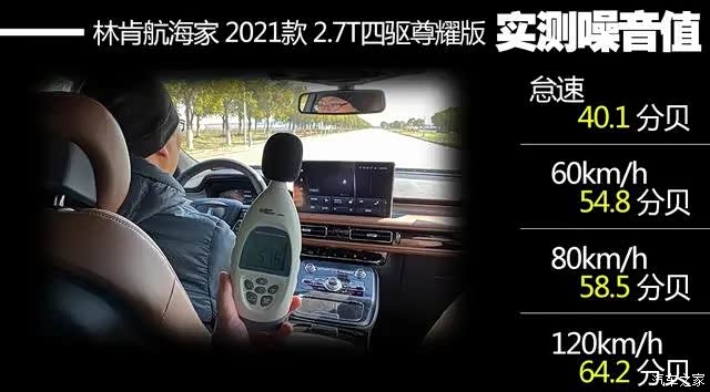 8. 林肯航海家(SUV),怠速40分贝,60公里54分贝,80公里58分贝,120公里64分贝。