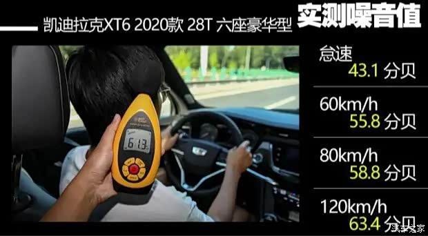 9. 凯迪拉克XT6(SUV),怠速43分贝,60公里55分贝,80公里58分贝,120公里63分贝。