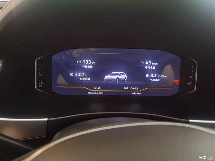 1.行驶里程6364公里,6月12日行驶133公里,平均车速43公里,油耗8.3升,还不错。
