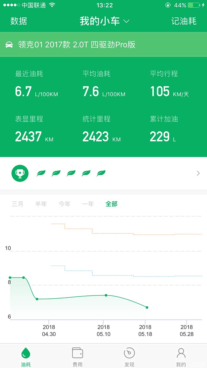 附上我最近的小熊油耗截图……