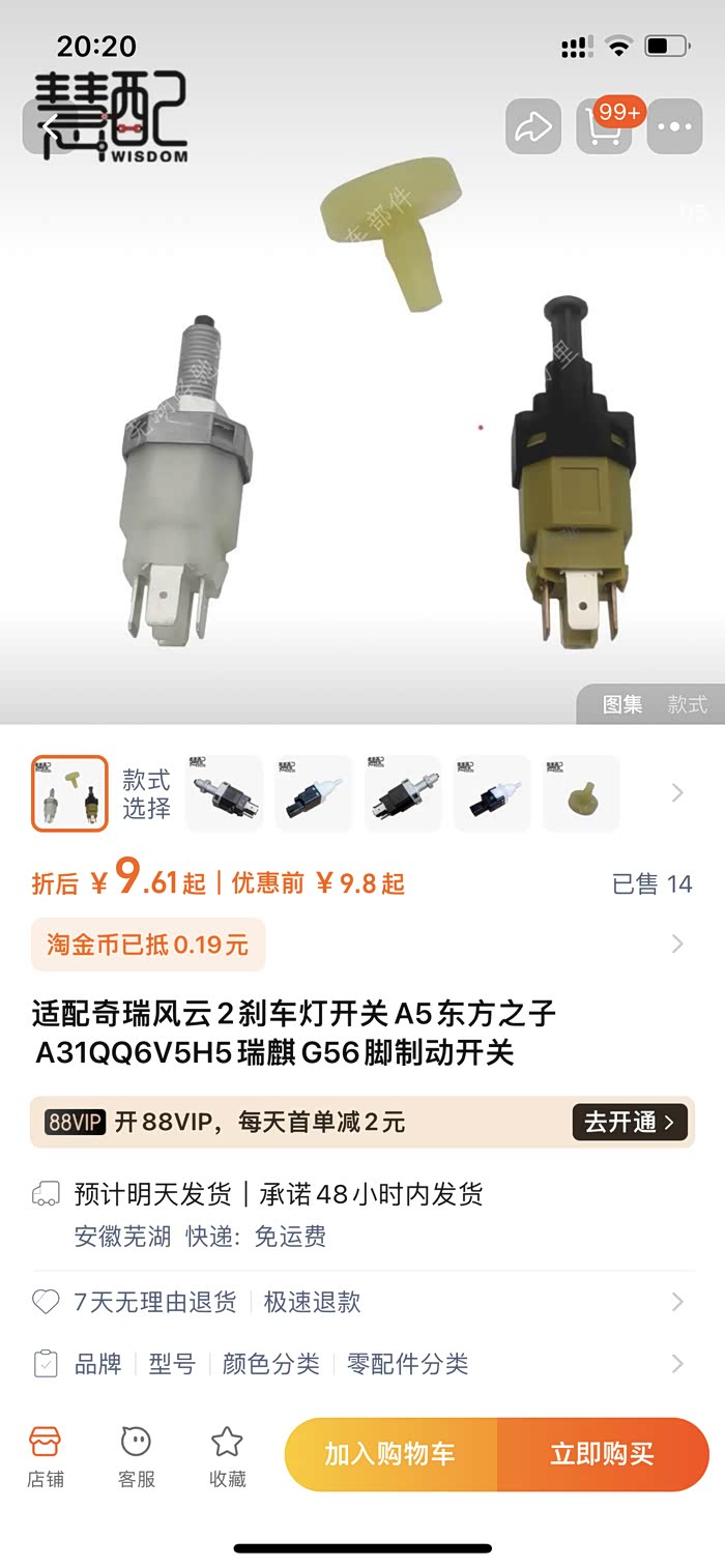购买的瑞麒g6一直爆刹车灯故障,每次停车以后重启就会消失,但是开个几公里又会出现,一开始还以为是刹车坏了。换了刹车片。还有刹车线,但是仍然出现故障灯。经高人指点。才知道原来是这个刹车开关坏了,淘宝花15块钱买的开关,手工费15块钱解决,为这么一个破故障,前后花了我几百块钱,手里还有瑞麒g6,有同样故障的车友。可以更换一下试试。刹车开关位于刹车踏板的顶端。