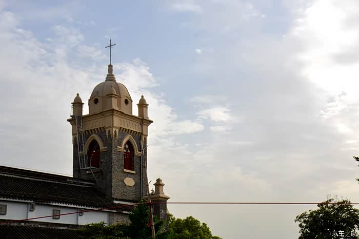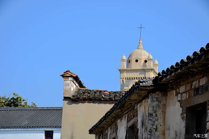 前方,一片徽派老房子的上方,出现了一座哥特式的屋顶,这就是水东圣母堂了。
