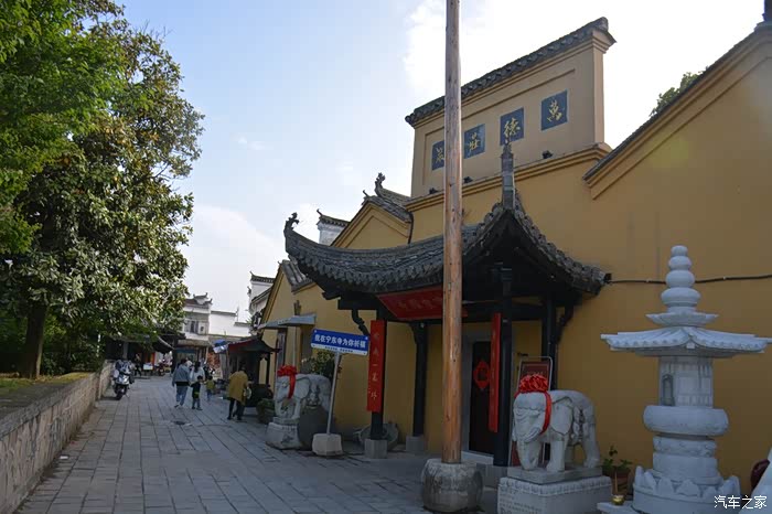 老街需要穿过329国道,走过一片八九十年代始建的街面。首先是一座古老的寺庙--宁东寺。门前树着似乎是打卡的标牌,有些不大协调。