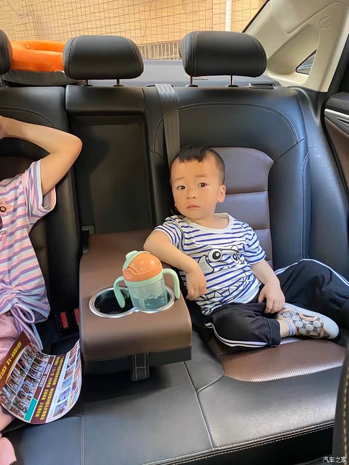 悠闲的儿子,他非常喜欢这个座位,有扶手,有杯架,说真的,国产配置就是良心,轿车小孩坐不压抑,车窗低,我现在的捷达vs5都没有后杯架扶手