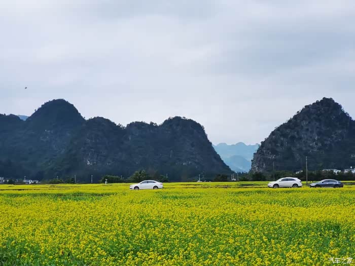 万亩油菜花:万亩油菜花盛开在烈烈暖阳下,在层叠的峰林间,一座座峰林在初春的日光下延伸到天边。山下是灿烂明黄的大海般的油菜花田,不知名的村寨掩映其中若隐若现。远处青山如黛,近处大片大片的油菜花开得热烈灿烂。
