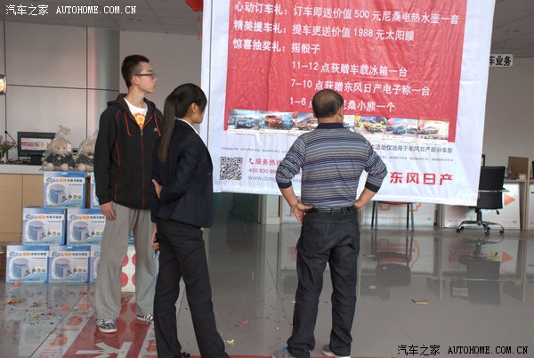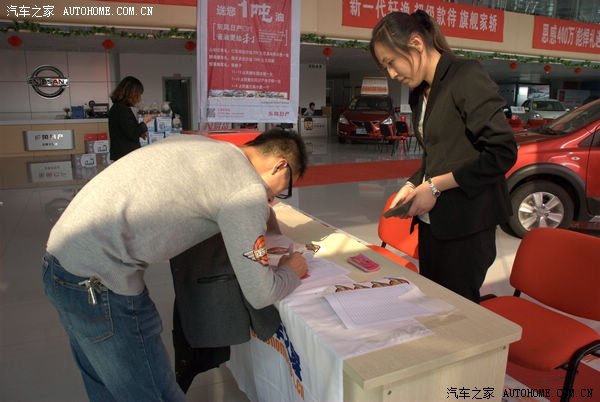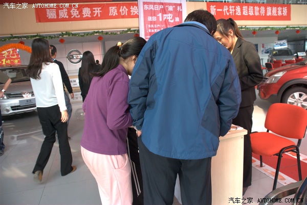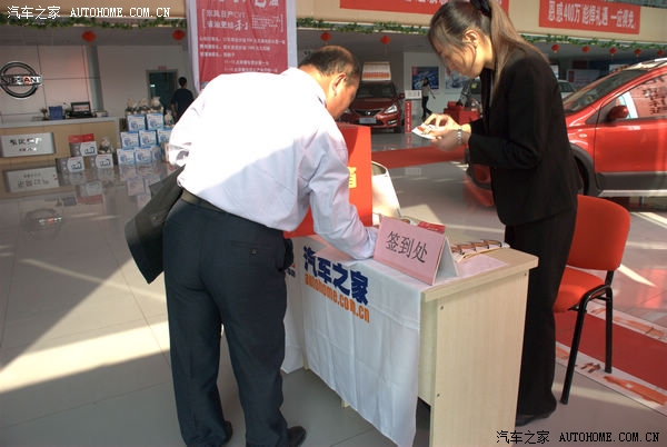 10月20日,新轩逸及日产全系看车团活动在济南龙腾专营店举行,期间,店内为此次活动做了细致的准备,活动下午1点30分网友开始签到,本以为12点到现场已经够早,没想到网友更早来到展厅,感谢大家对汽车之家的支持,下面是此次活动的现场情况: