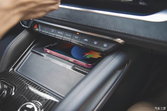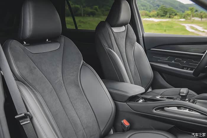 皮质与麂皮材质拼接的电子座椅包裹性和质感都相当不错,软硬适中,前排支持座椅加热和通风功能