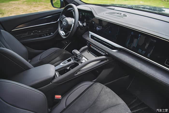车内第一眼看到的是那满是屏幕的前排,中控和副驾驶是独立的两块12.3英寸屏幕,整车前排三联屏
